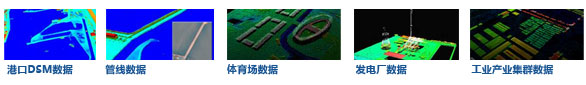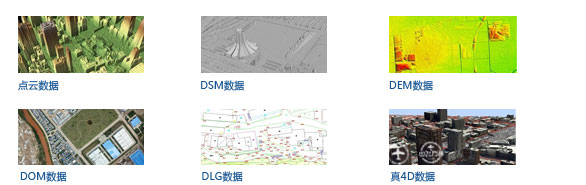 采集获得的数据可以获得多种成果:DSM、DTM、DEM、 NIR、DOM、DLG、专题图、三维模型等