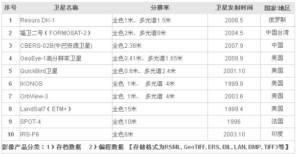 中飞万通-卫星遥感数据获取处理服务:提供卫星遥感数据影像、Resurs DK-1遥感卫星、福卫二号卫星影像、中巴资源卫星影像、GeoEye-1高分辨率卫星影像、QuickBird卫星影像、IKONOS卫星影像等轨道编程数据获取服务.中飞万通拥有强大的DEM/DOM/DSM/DLG/数据处理能力和应用后援支持,热线:010-56128608